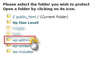 2. Pilih folder yang akan di beri password. Karena kita akan mengamankan folder wp-admin makan pilih wp-admin