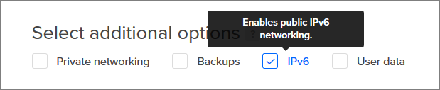 - Bagian select Additional Option, kamu bisa memilih IPv6 untuk mengaktifkan server VPS dengan IP versi 6. Jika tidak pun, tidak apa-apa.