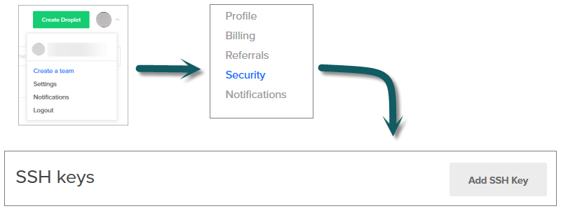 - Masuk ke menu Setting > Security > Add SSH Key