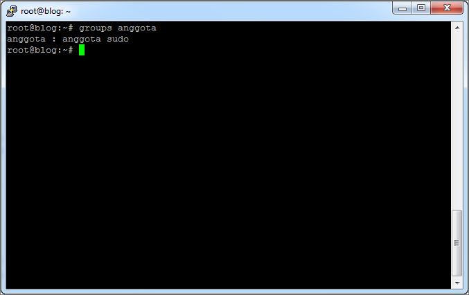 Jika ingin mengecek apakah user dengan nama anggota sudah masuk di di grup sudo