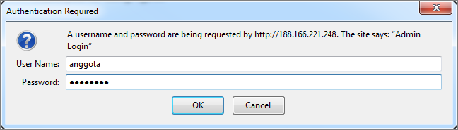 - Sekarang coba akses kembali http://ip-address_atau_domain/datakeeper maka akan muncul window untuk memasukkan password